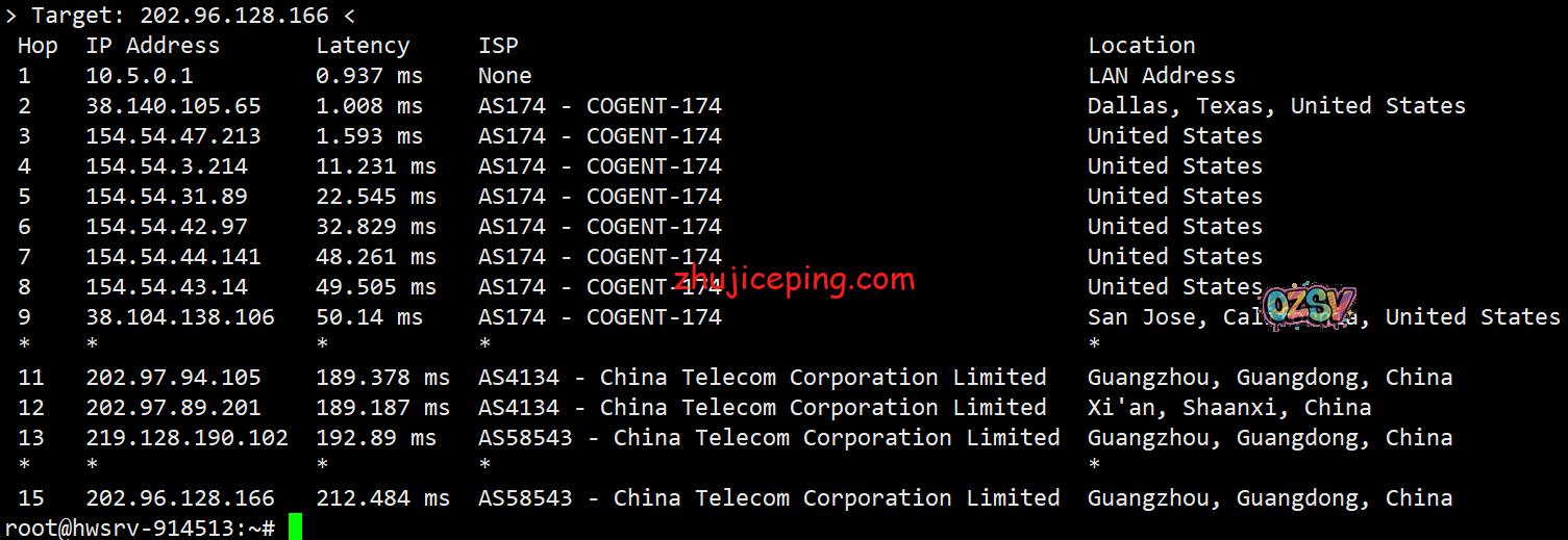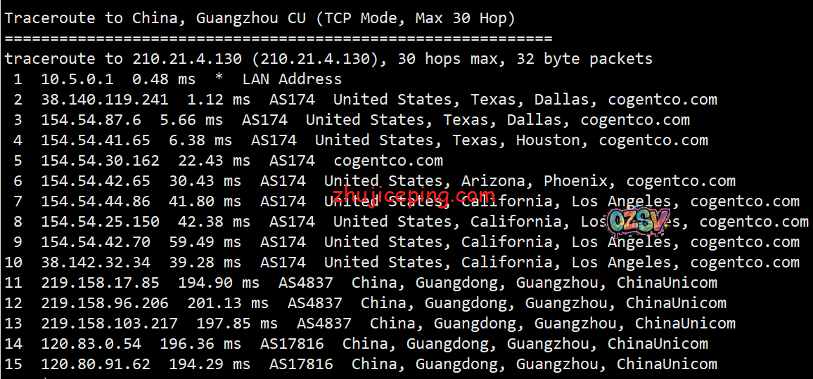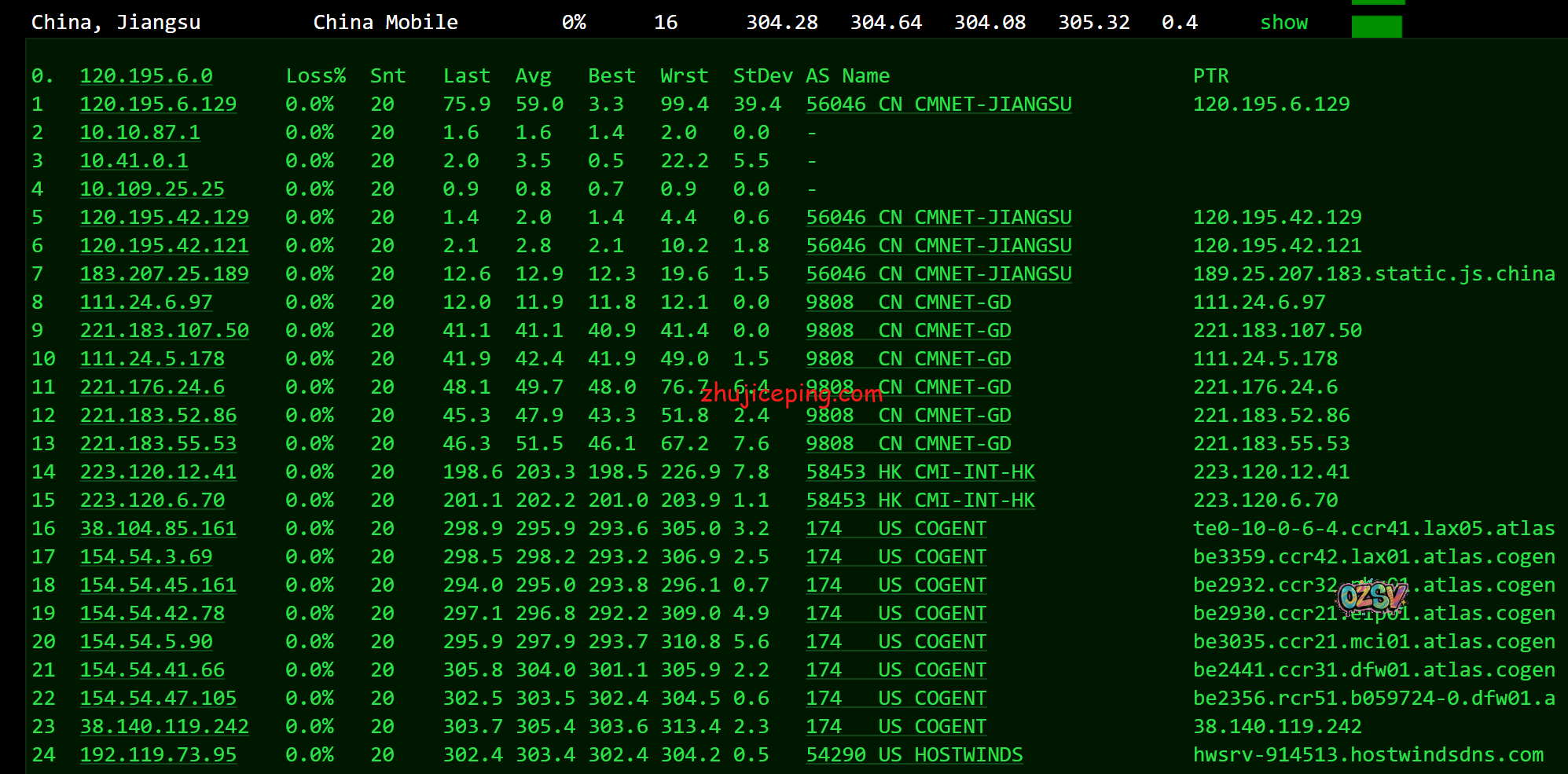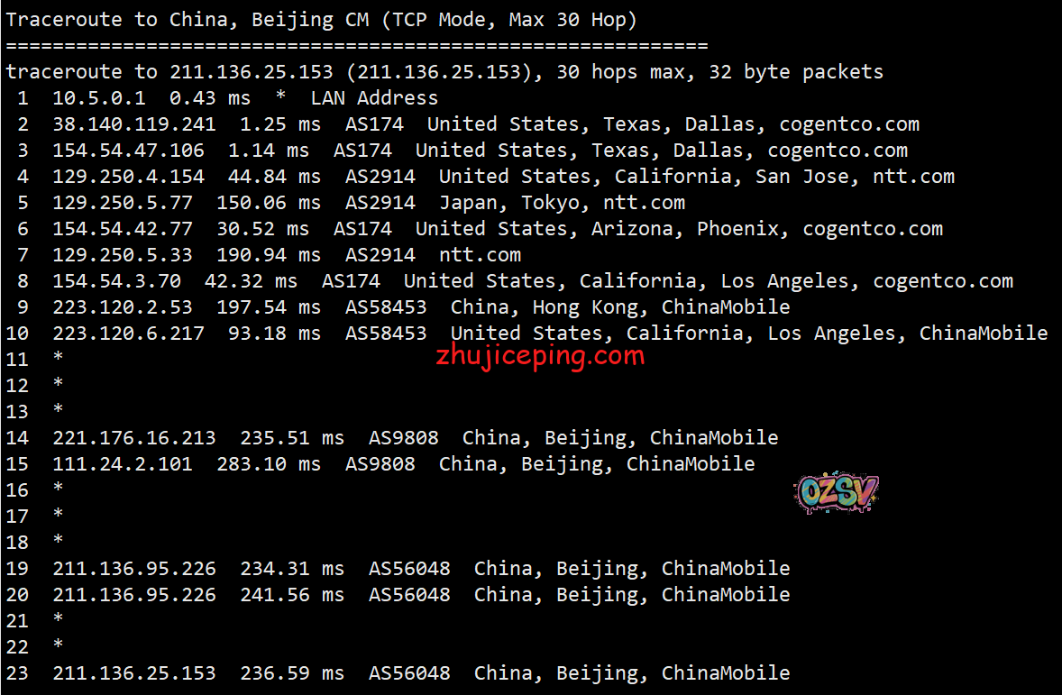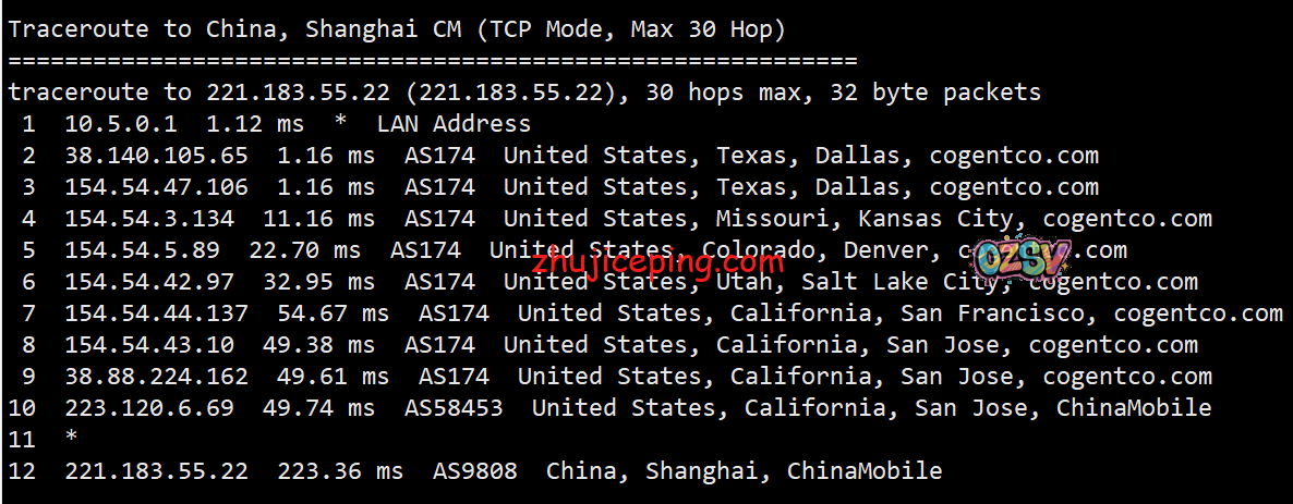 移动去程,广东出口到香港转CMI(固定模式,当骨干网理解就行了),然后对接cogentco: