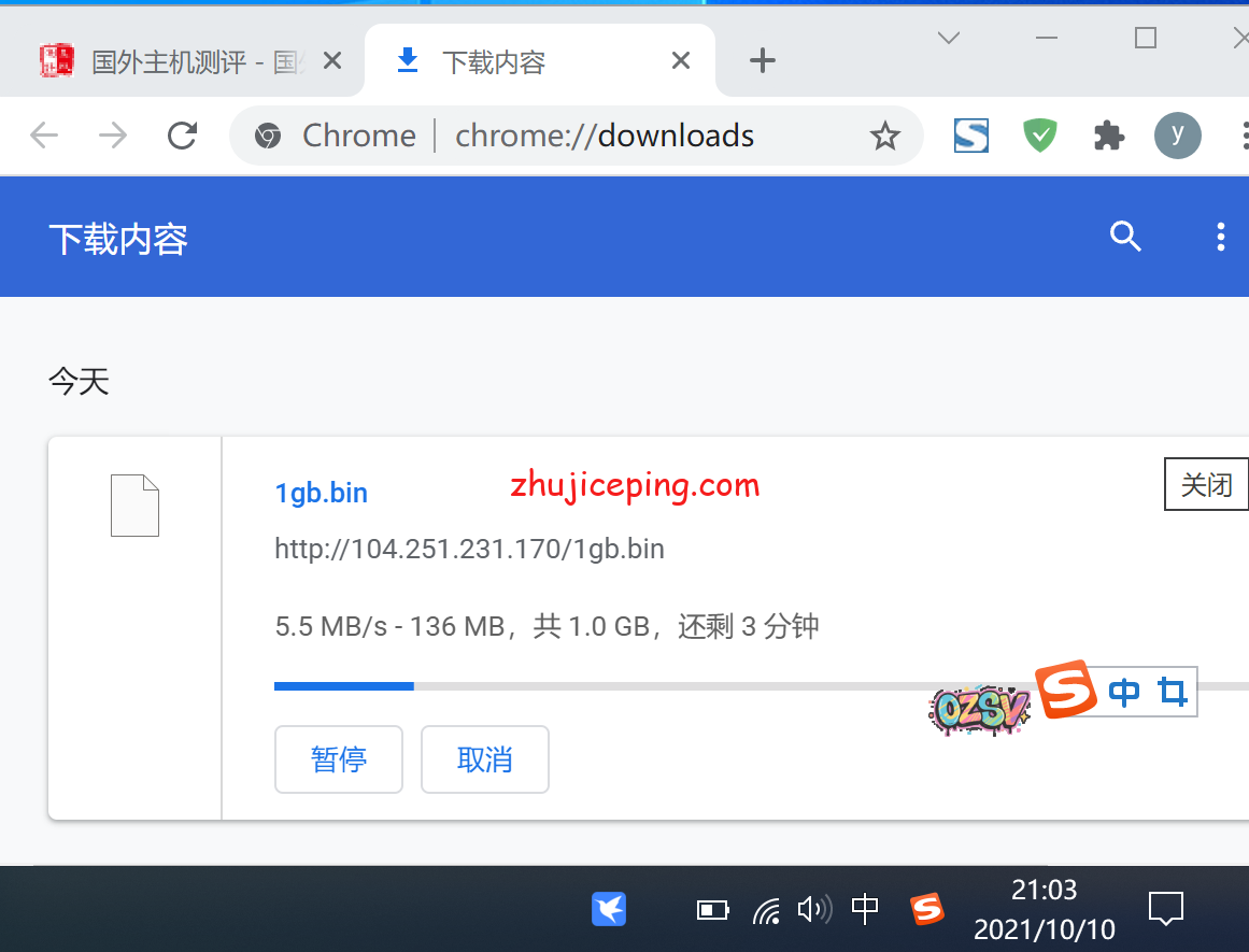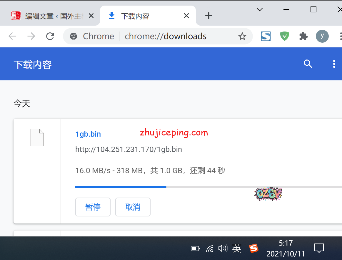 早上测试的,广州电信Chrome浏览器下载VPS上的文件,速度如下: