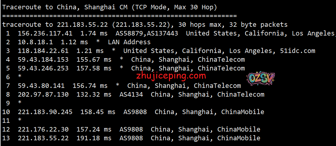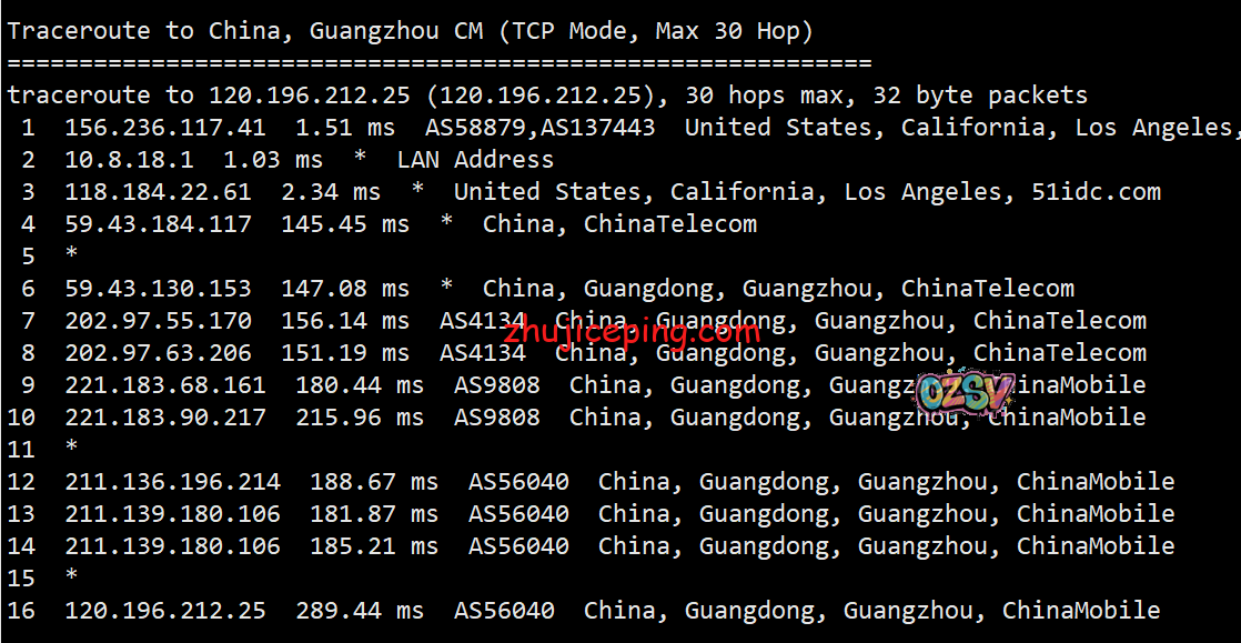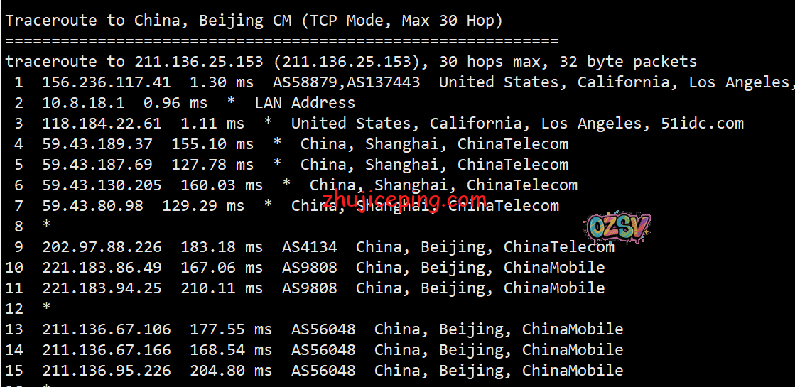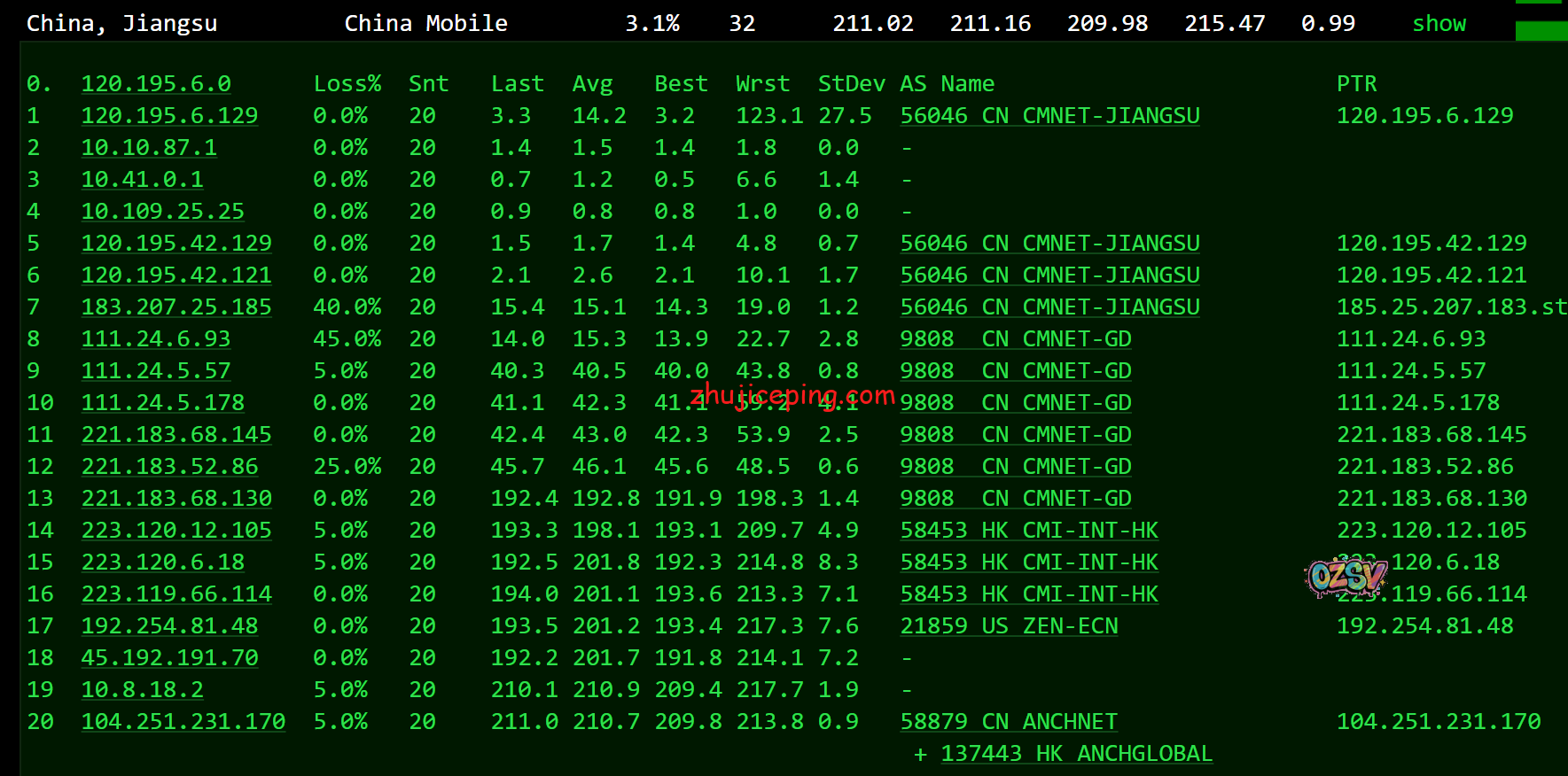 回程,到国内移动:一样也是走的电信CN2回国后到国内转移动
