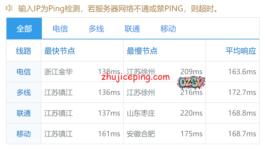 国内80个节点的ping的测试数据,ping.chinaz.com提供: