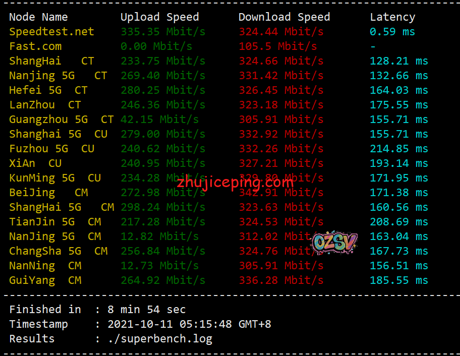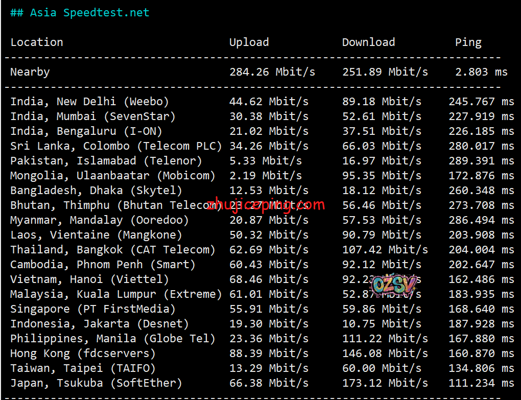 我们来重点关注一下VPS在国内能跑到多少,这个是核心的核心。speedtest.net的国内三网节点一起上,分白天闲暇时段和晚高峰骨干网爆炸时间段,大家注意对比下!先看白天的: