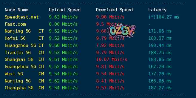 基本上下宽带都是跑满的,站长这里也把评测结果放出来