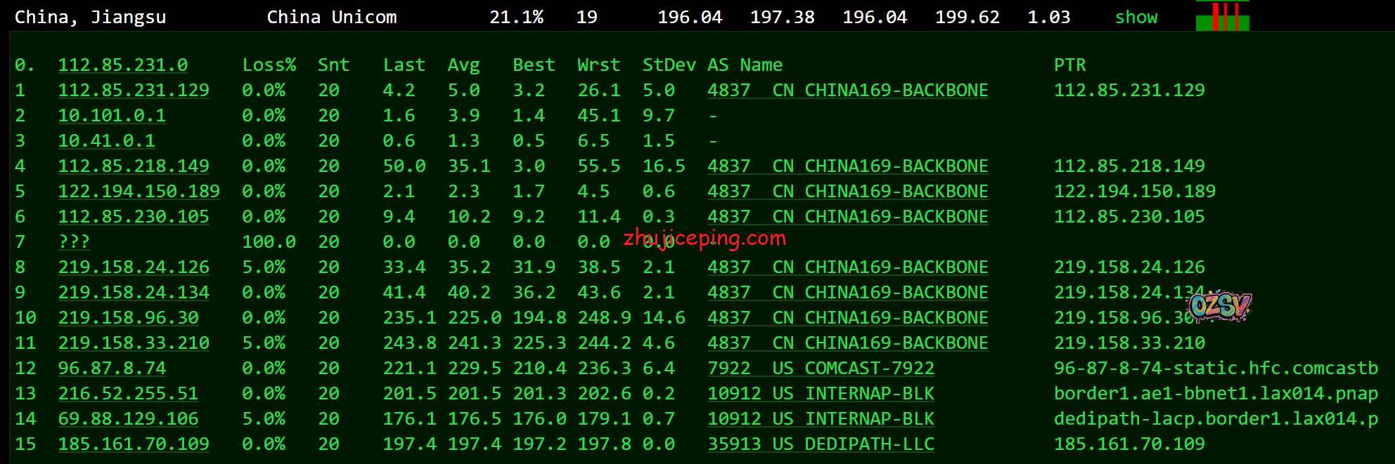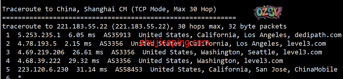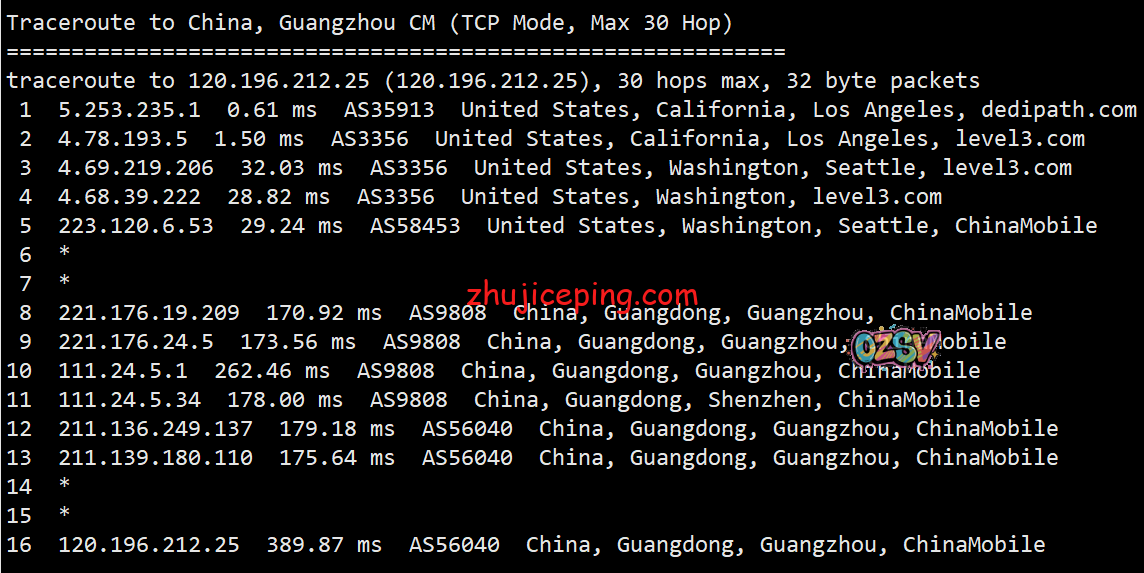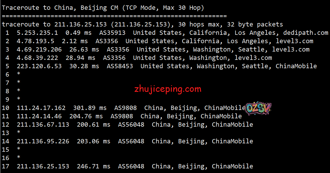 回程,电信、联通、移动都是走的自己在美国的节点直接回国的,算是优化很好了。