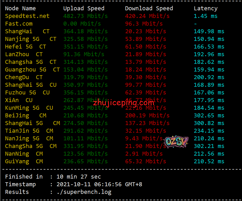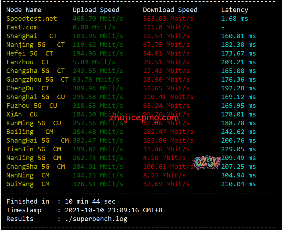 来关注下VPS的带宽在国内能跑到多少,speedtest.net的国内三网节点试试,下方是白天测试的: