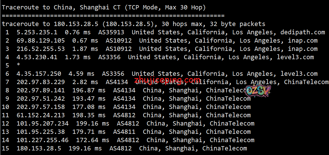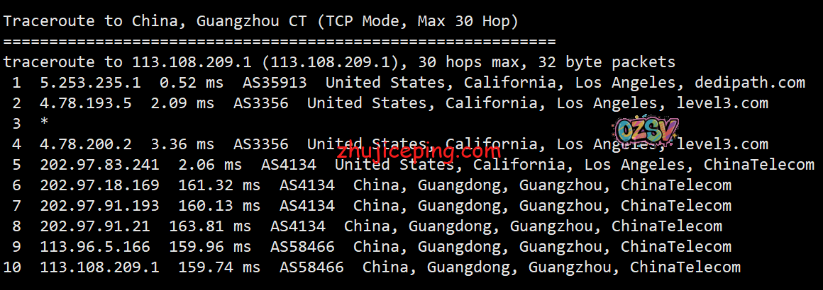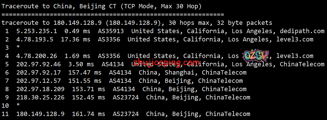 回程,到国内电信:洛杉矶电信节点直接回国