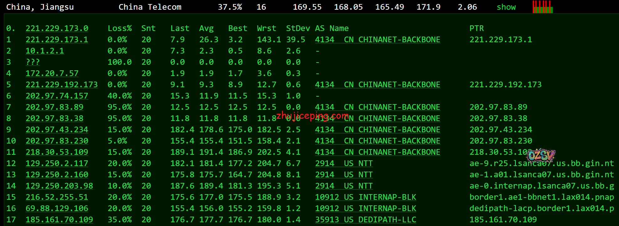 电信去程,走的是骨干对接NTT到美国洛杉矶NTT数据中心:
