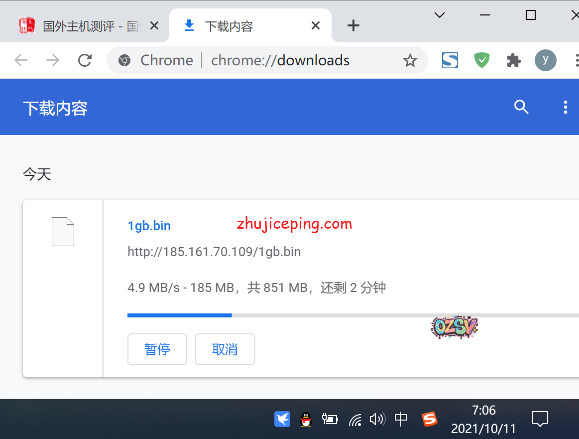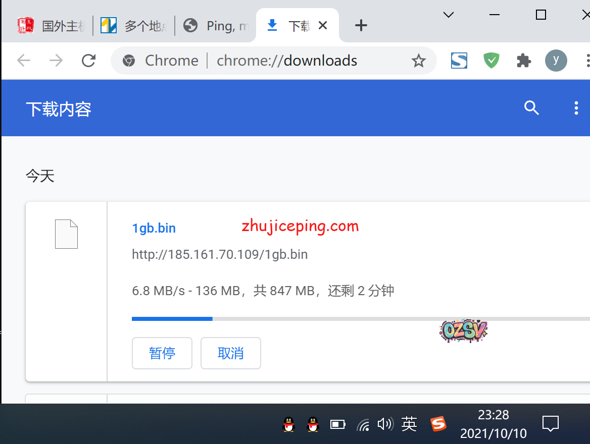 广州电信,用浏览器下载VPS上的文件,试试本地的实际效果,忘记关闭迅雷了截图的时候: