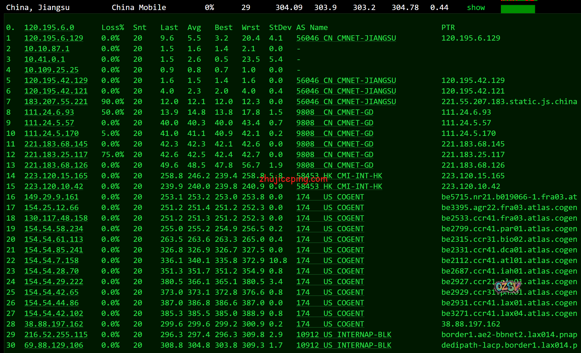 移动去程,香港CMI对接cogentco: