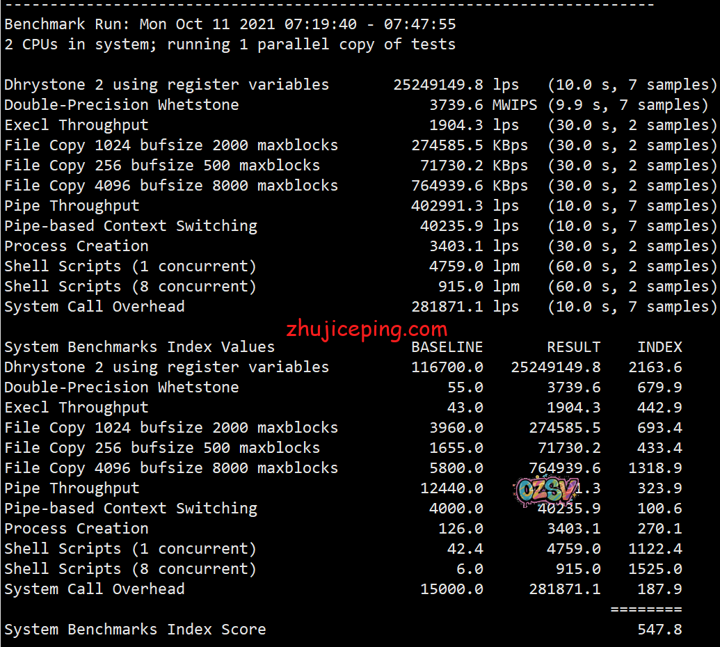 来个Unix bench,比较弱就是: