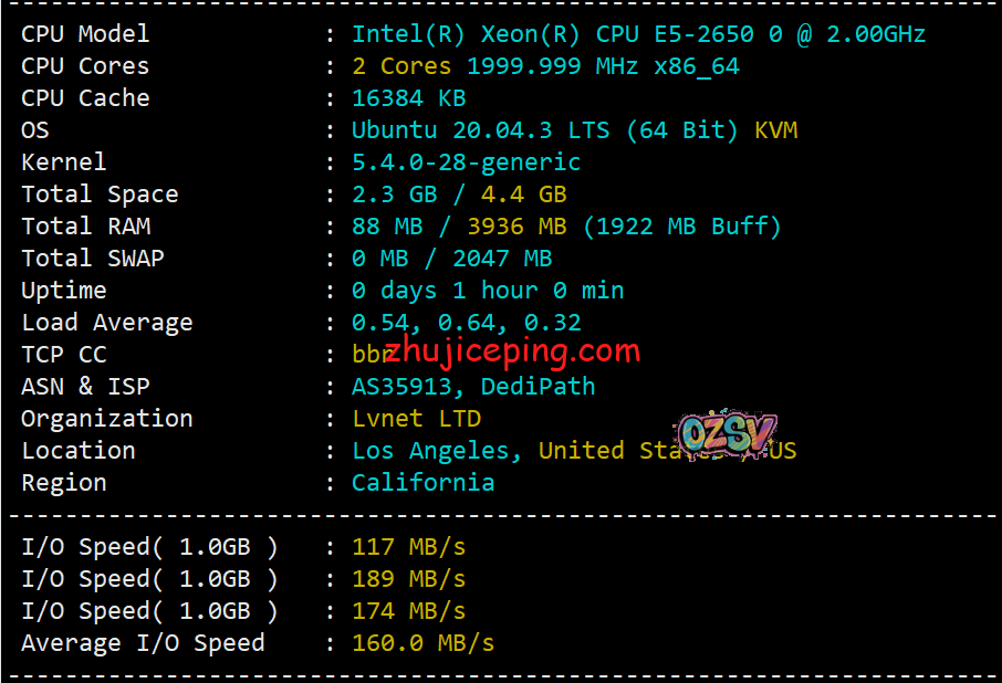 dedipath应该是大家比较熟悉的商家了,运作着纽约、洛杉矶、拉斯维加斯、杰克逊维尔、达拉斯、亚特兰大、丹佛、圣何塞、西雅图、凤凰城这几个数据中心的业务,包括独立服务器和VPS。今天主机测评给大家带来洛杉矶数据中心的KVM系列VPS的测评,数据仅供参考!