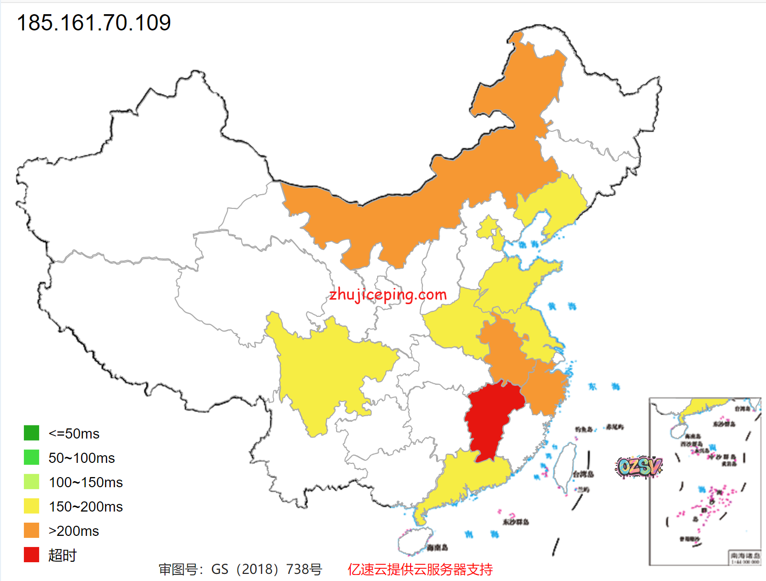 国内80个节点的ping测试数据(测试时间是晚高峰期间):
