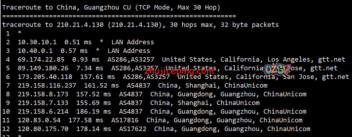 回程,到国内联通:北京方向是洛杉矶到圣何塞cogentco对接联通骨干回国,上海方向是从洛杉矶联通节点直接回来,广州方向是洛杉矶到圣何塞GTT对接联通骨干到上海联通然后转广州。