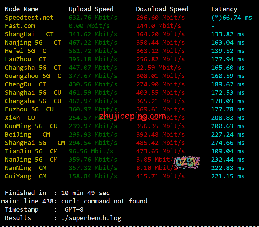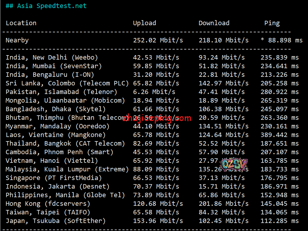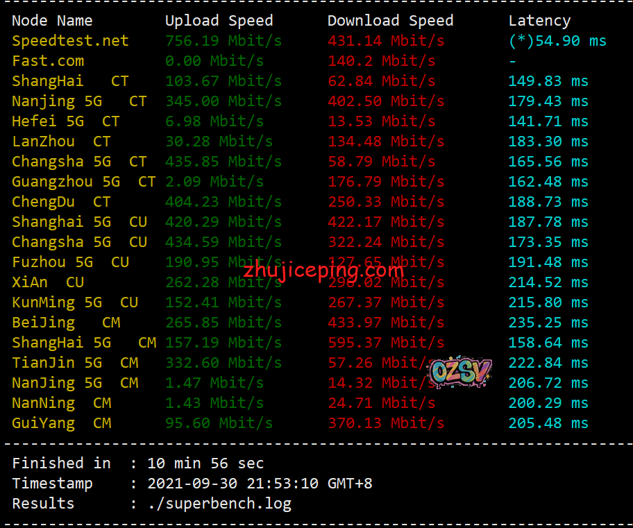 关注下speedtest.net的国内三网节点测试,看看上下行能跑到多少,先看白天的: