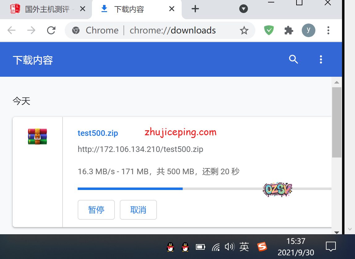 存放在云服务器上的文件,广州电信直接下载的速度可以达到16.3MB/S: