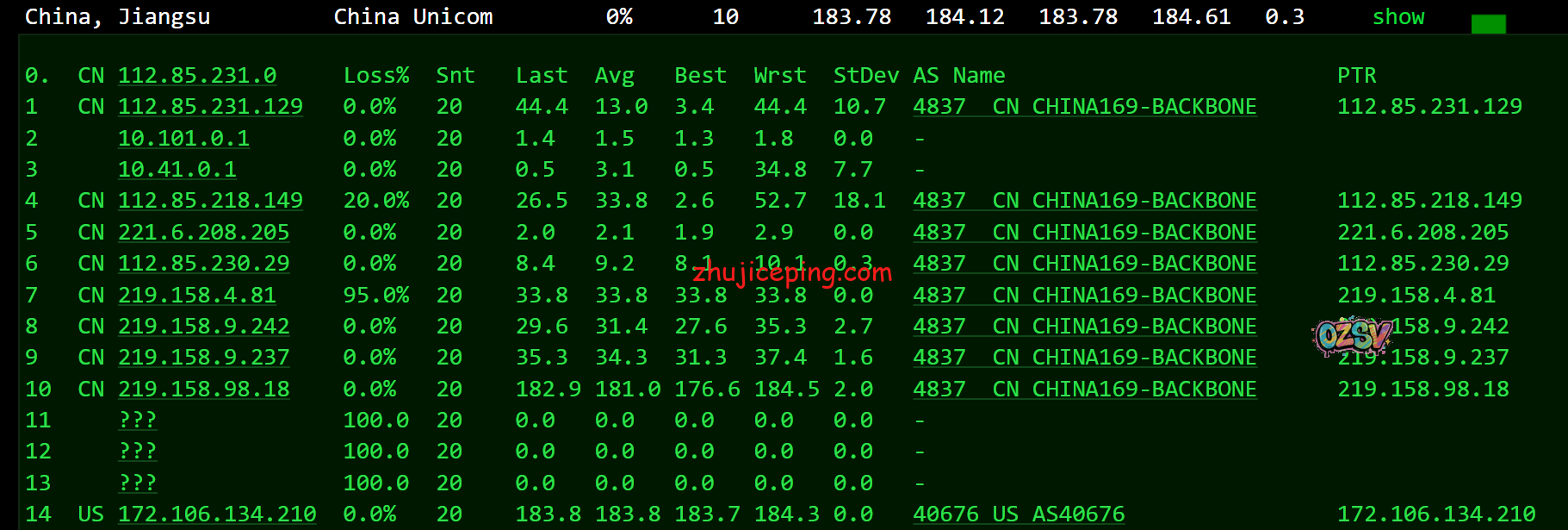 大致说下站长个人意见,去程只有电信和联通是直连,移动绕道稀烂;回程,部分从美国西海岸节点直连回来,也有部分是绕道的;再加上Unix bench跑分是相当弱,而且防御只有10Gbps;所以,个人觉得性价比不高,不是特别理想!