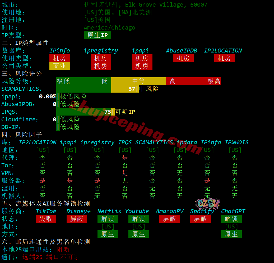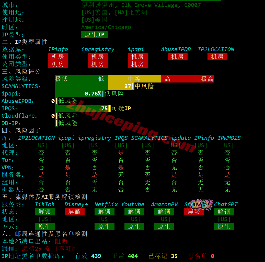多个数据库对当前IP属性的大致判断:美国原生IPv4,能解锁一些东西