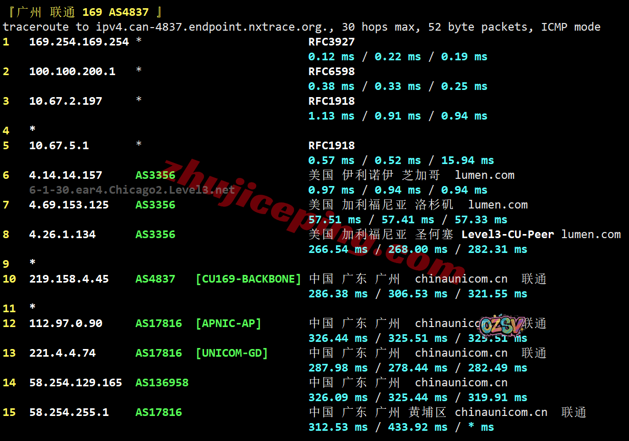 广州方向:走level3经过洛杉矶去圣何塞,从联通圣何塞peer/level3出海回国