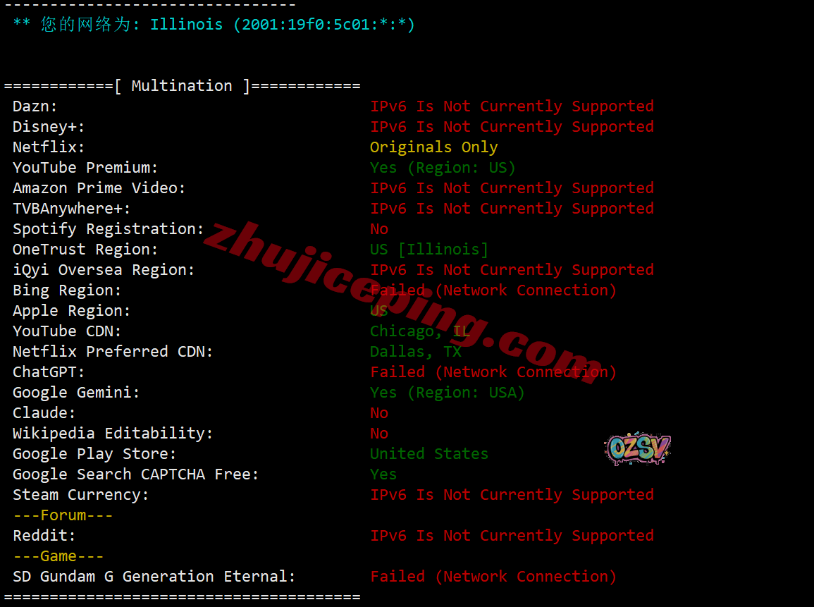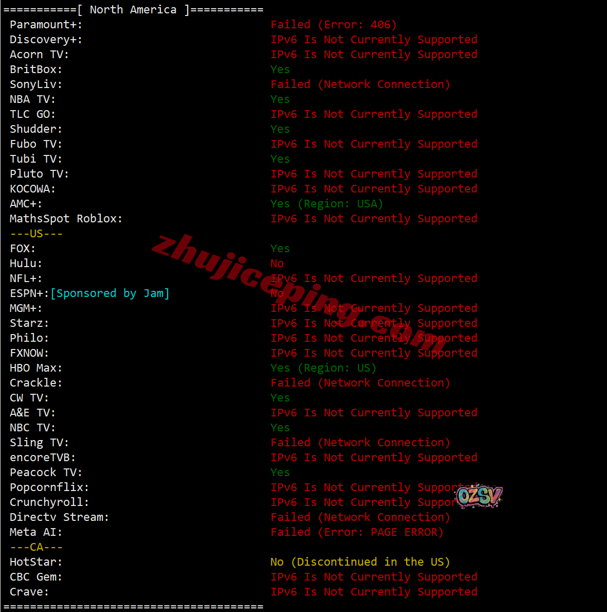 IPv6环境下,部分流媒体解锁的大致结果如下: