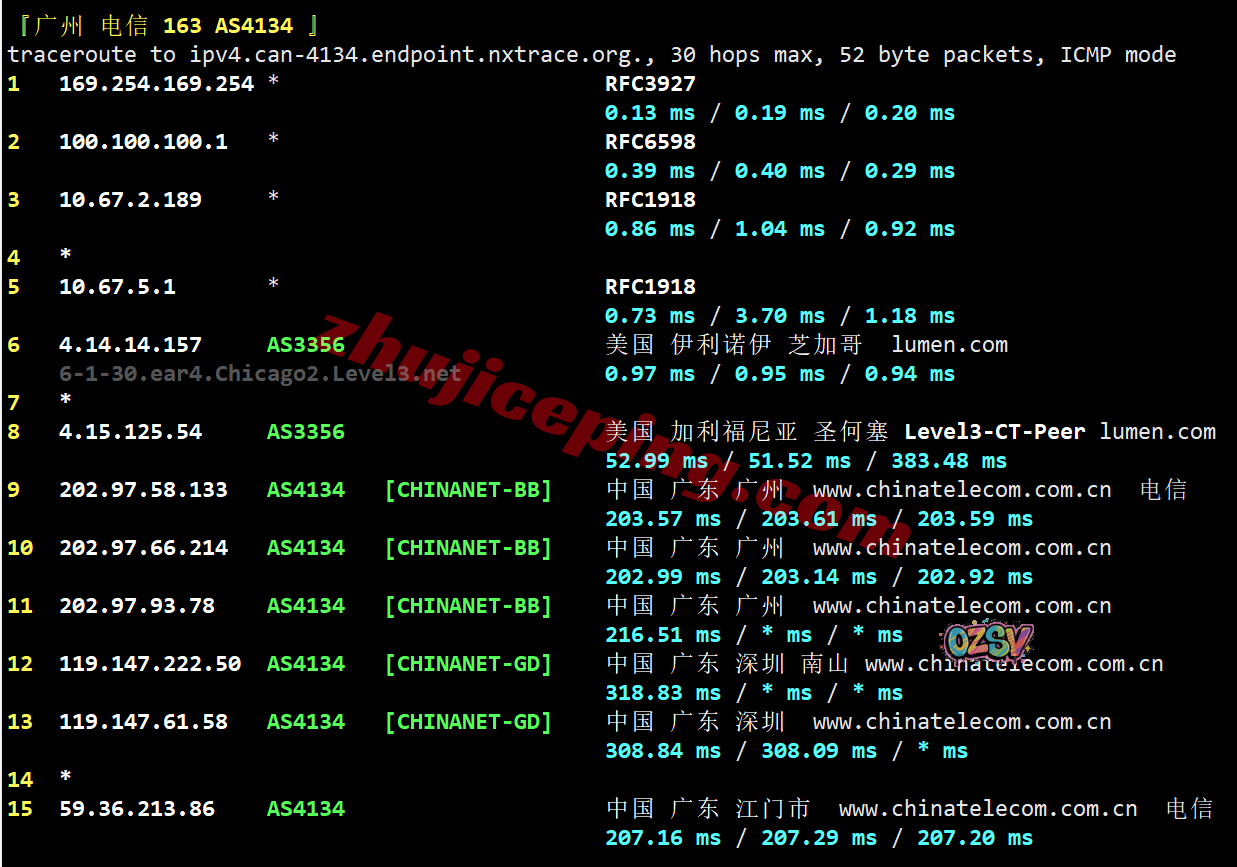 电信回程:走level3去圣何塞,从电信圣何塞peer/level3出海回国