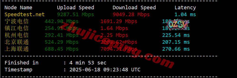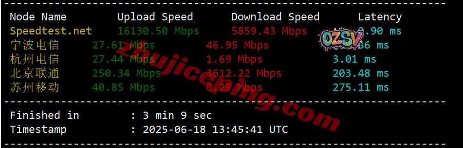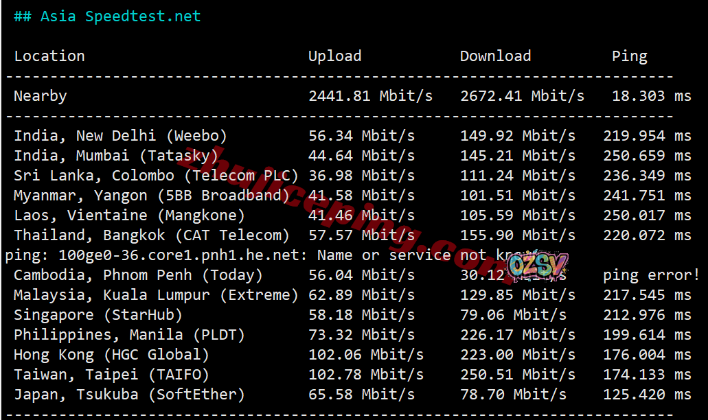 SpeedTest.Net的部分亚洲节点的带宽上下行测试数据: