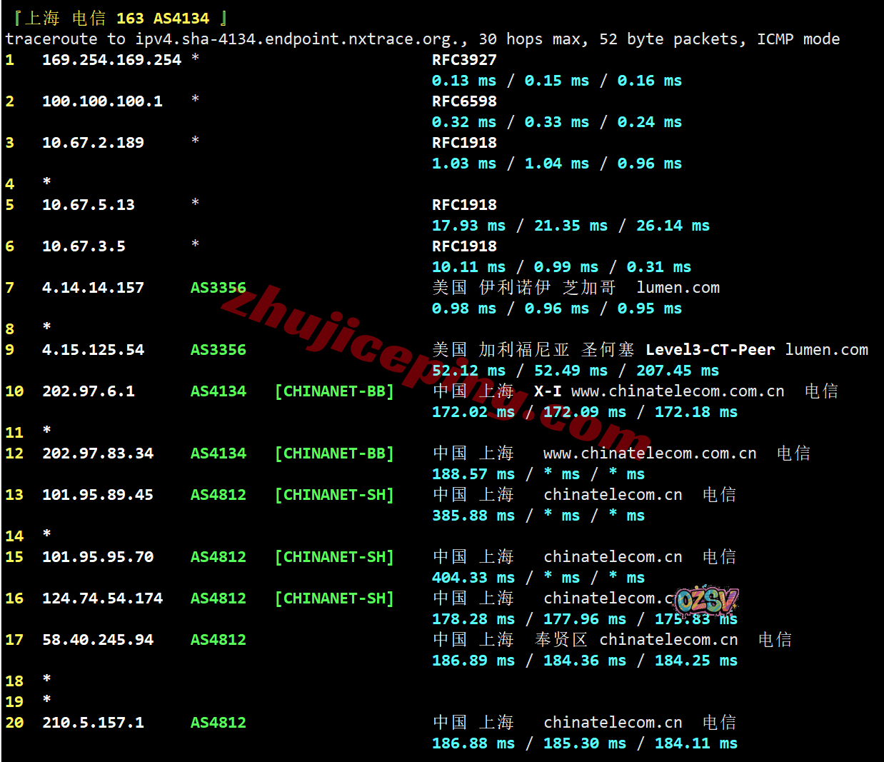 电信去程:直连电信美国圣何塞节点,然后接NTT去芝加哥