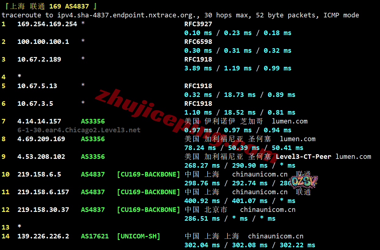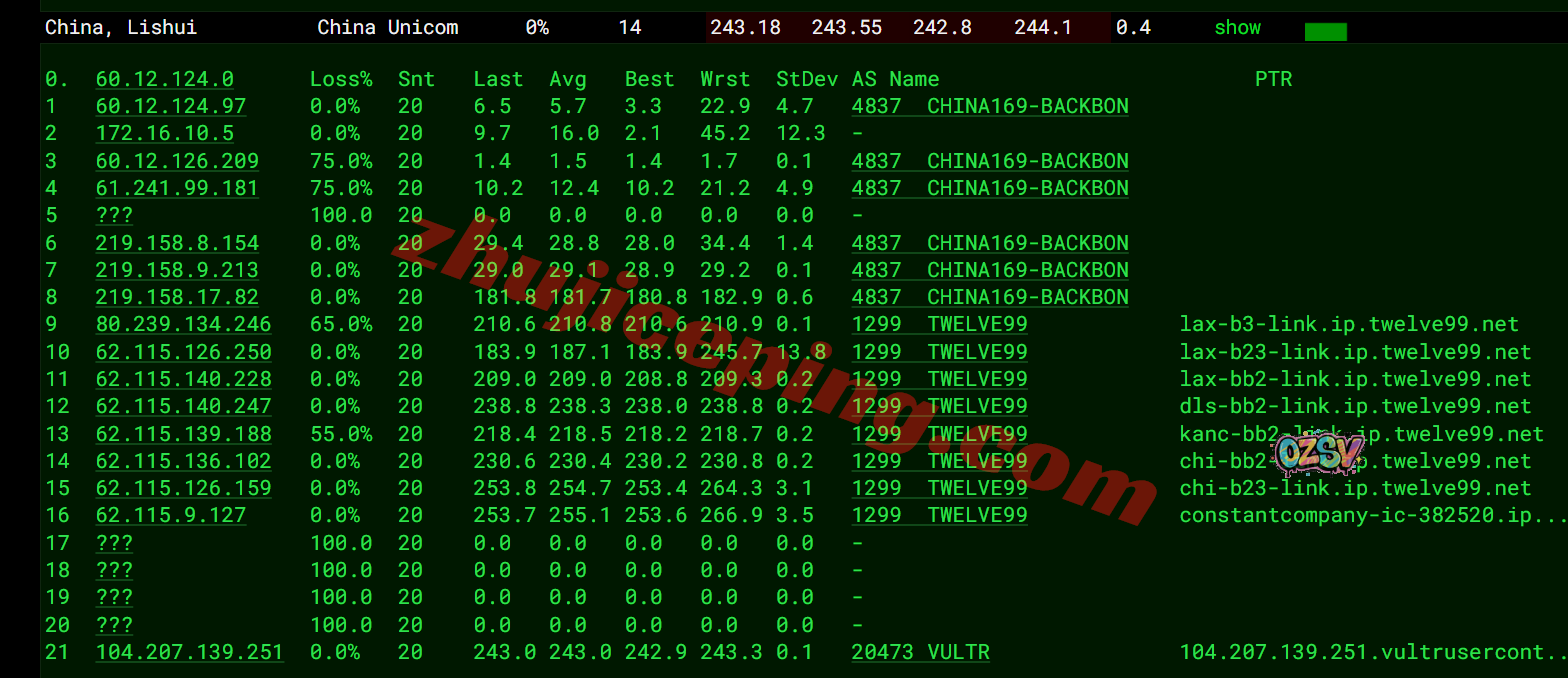 联通去程:直连联通美国洛杉矶节点,然后接telia经过达拉斯、堪萨斯城然后到芝加哥