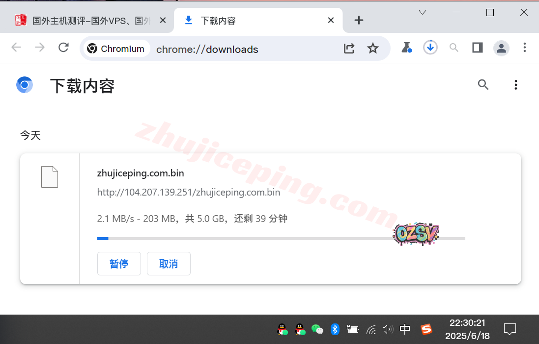 存放在测试云服务器上的文件,站长广州联通家宽用Chrome直接下载该文件,大致的下载速度如下所示:
