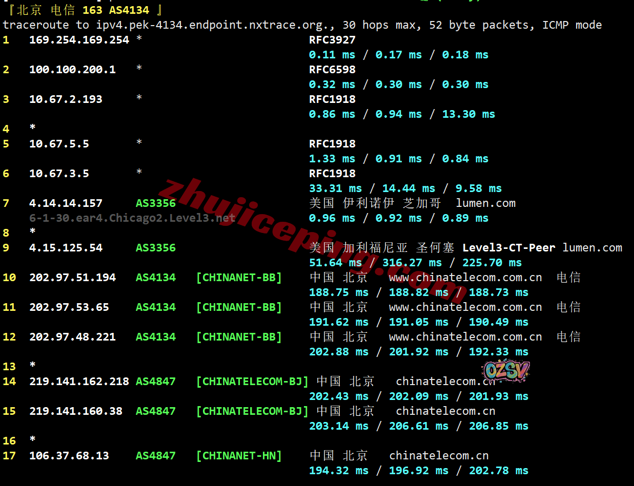 三网回程:(1)电信:走level3去圣何塞,从电信圣何塞peer/level3出海回国;