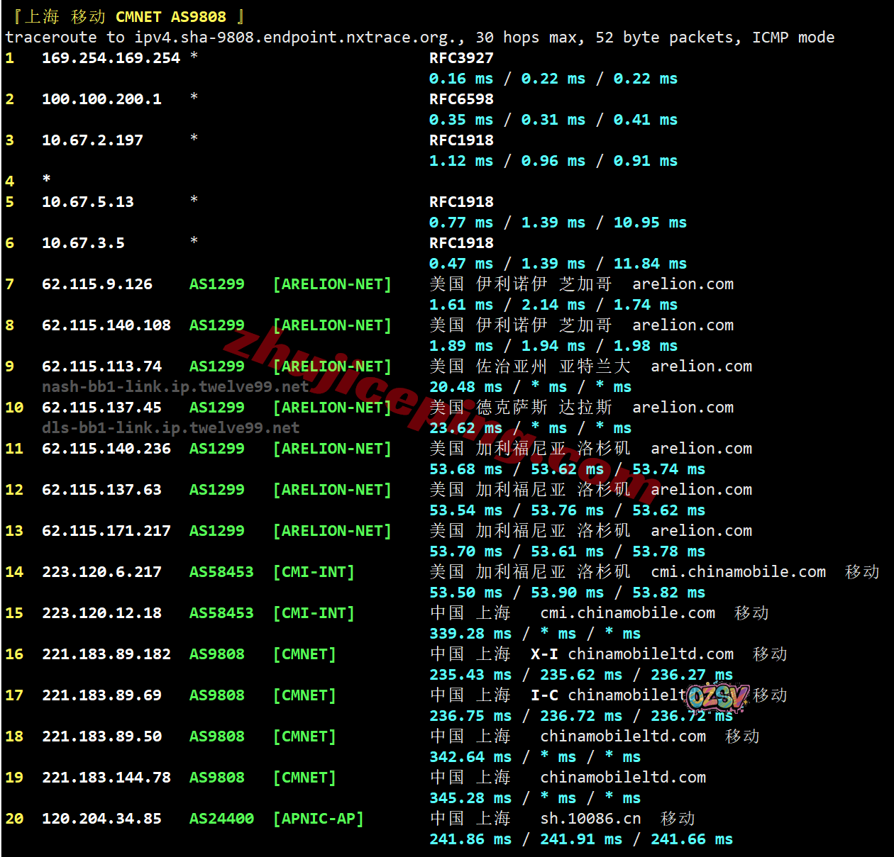 (3)移动:部分走NTT直接出海回国,部分走telia到移动西海岸节点然后直连回国、或者部分从西海岸移动peer出海回国;