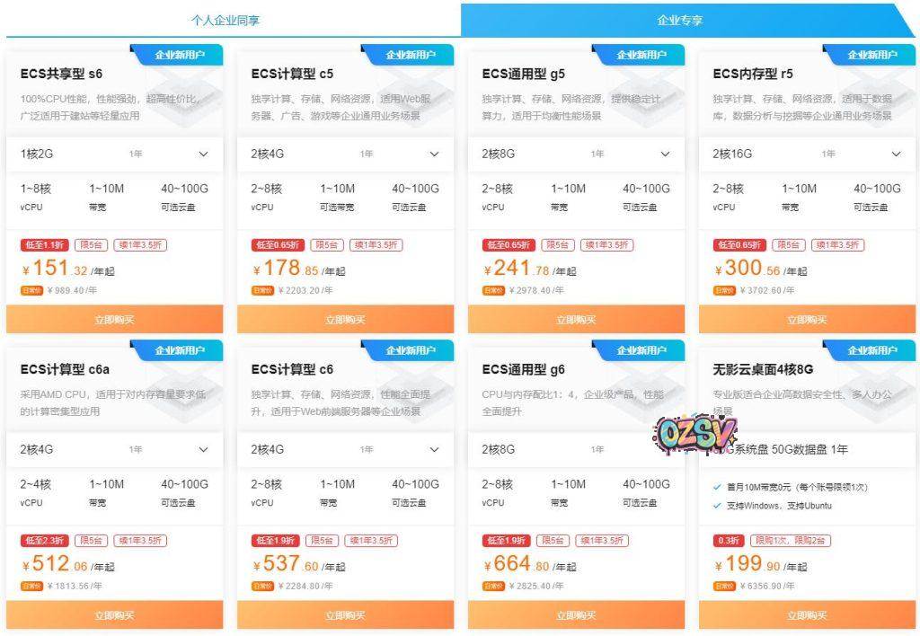 新用户完成实名认证或企业认证,即可享受低至0.6折购买,每人限1次,限购1~3台,我们可以看到轻量服务器低至年付99元,ECS云服务器n4低至年69元/年。