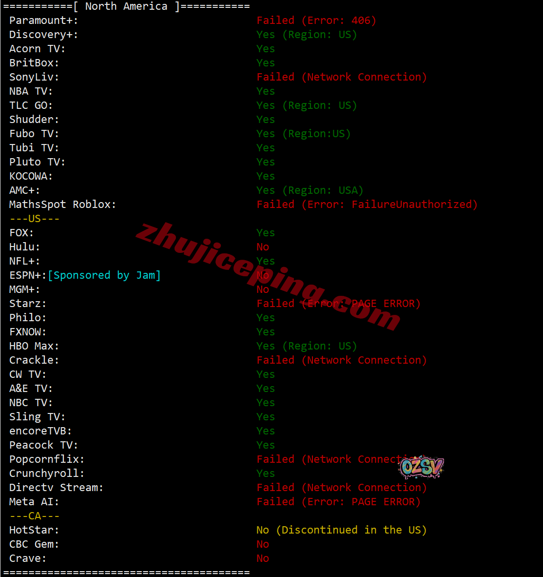 IPv4环境下,部分流媒体解锁测试的大致结果: