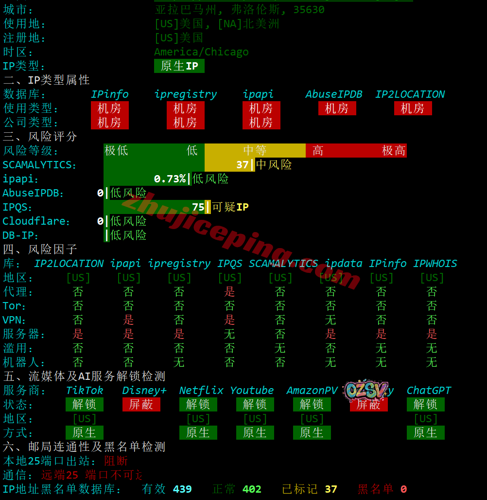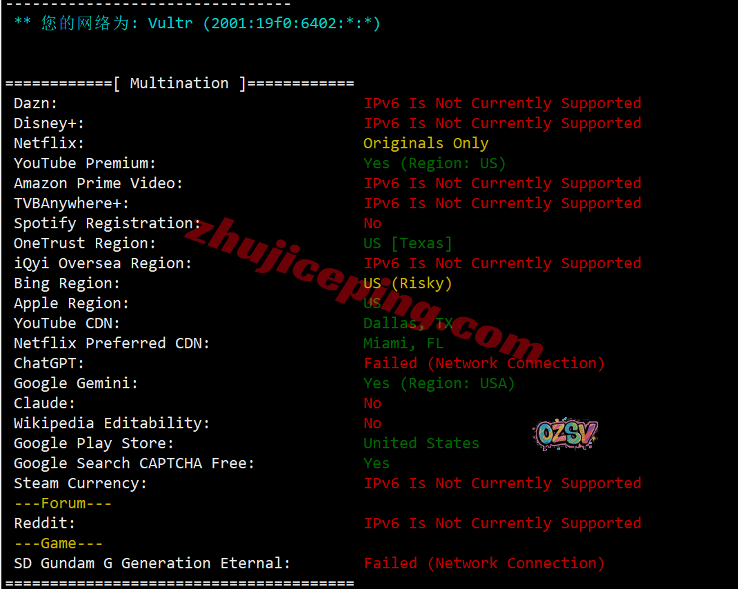IPv4和IPv6都是美国原生IP,IPv4能解锁不少东西,IPv6几乎没有解锁能力;