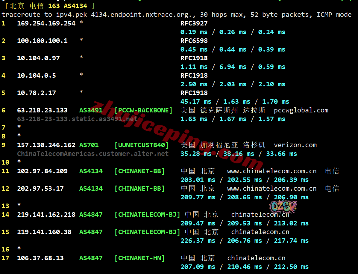 三网去程:电信和联通都是直连美国西海岸后再国际线路去达拉斯,移动是直连香港CMI后转PCCW直接去达拉斯;