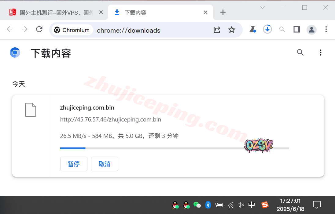 站长广州联通家宽,直接用Chrome下载存放在云服务器上的文件,大致的下载速度如下所示: