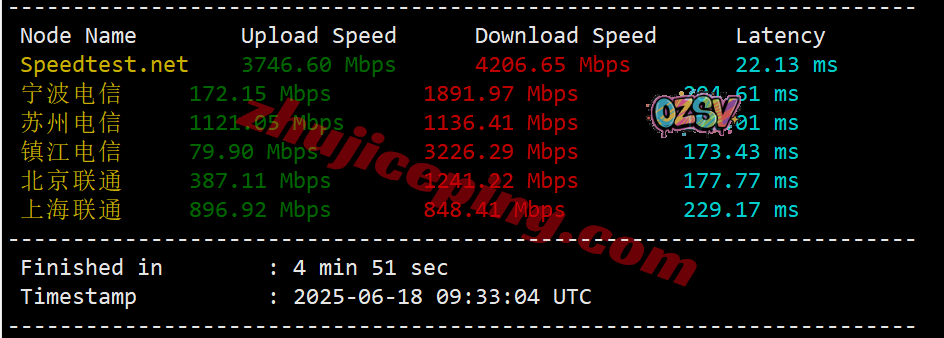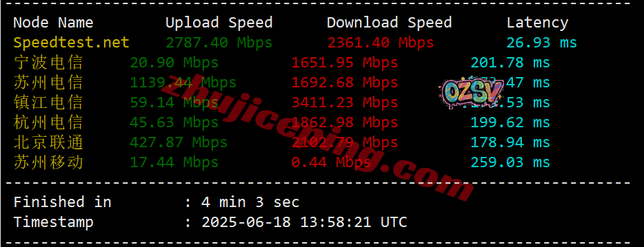 SpeedTest.Net的部分亚洲节点的带宽上下行测试数据: