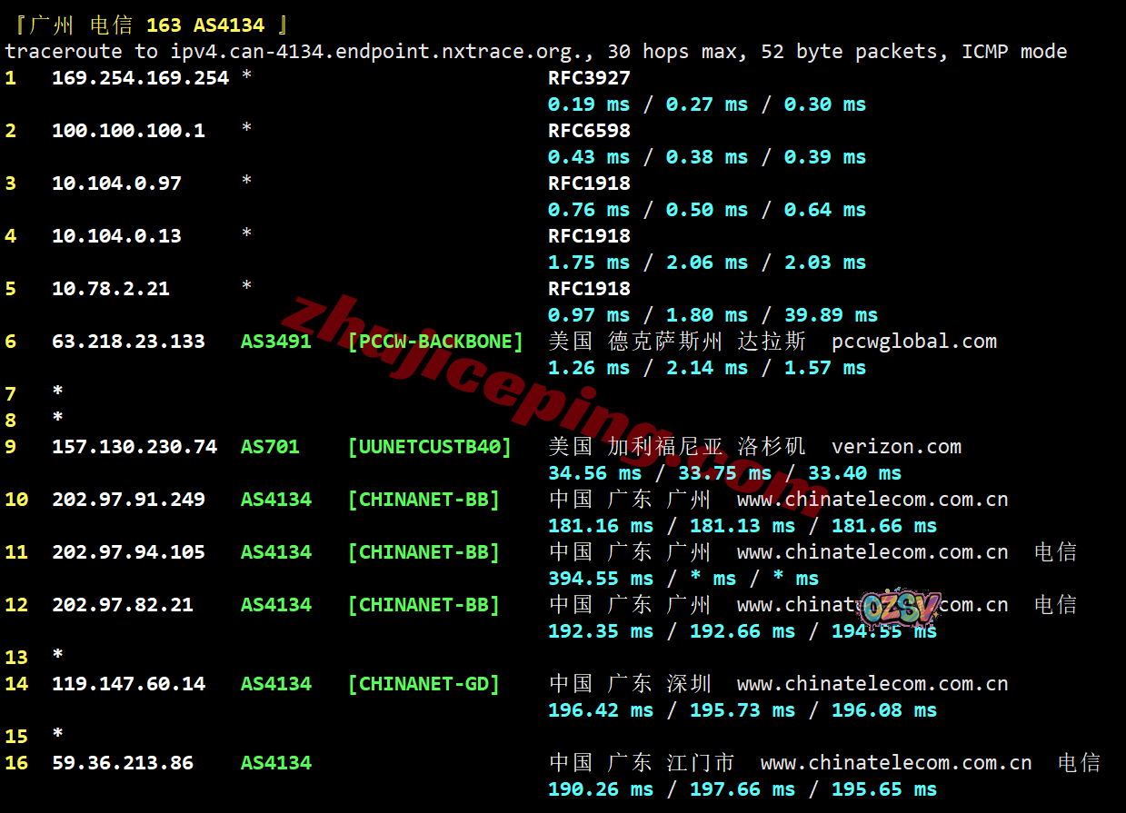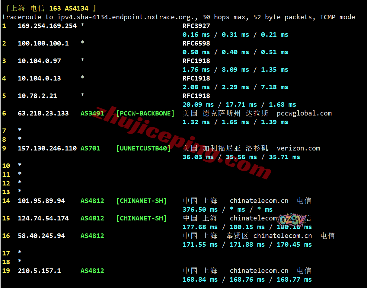 上海和广州方向:走pccw经过洛杉矶转Verizon出海回国