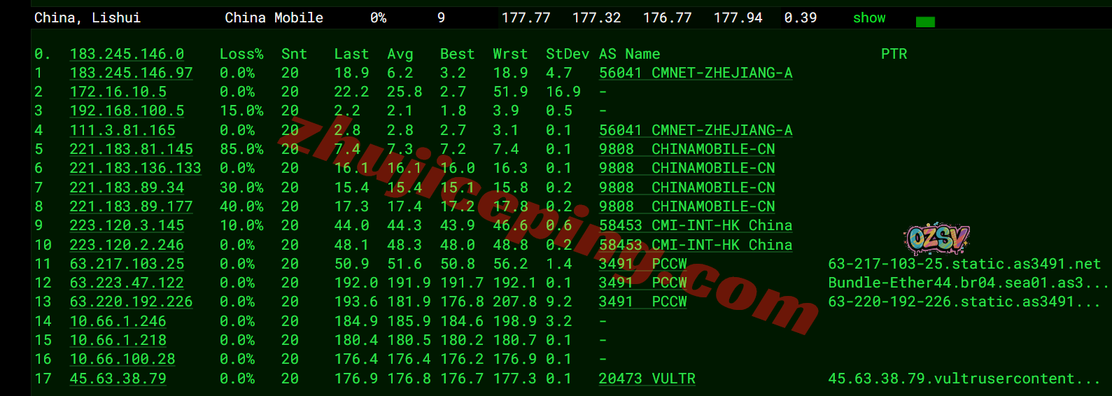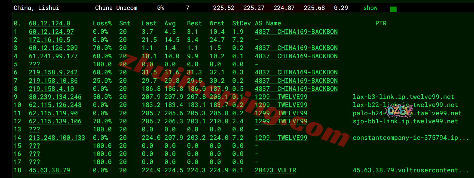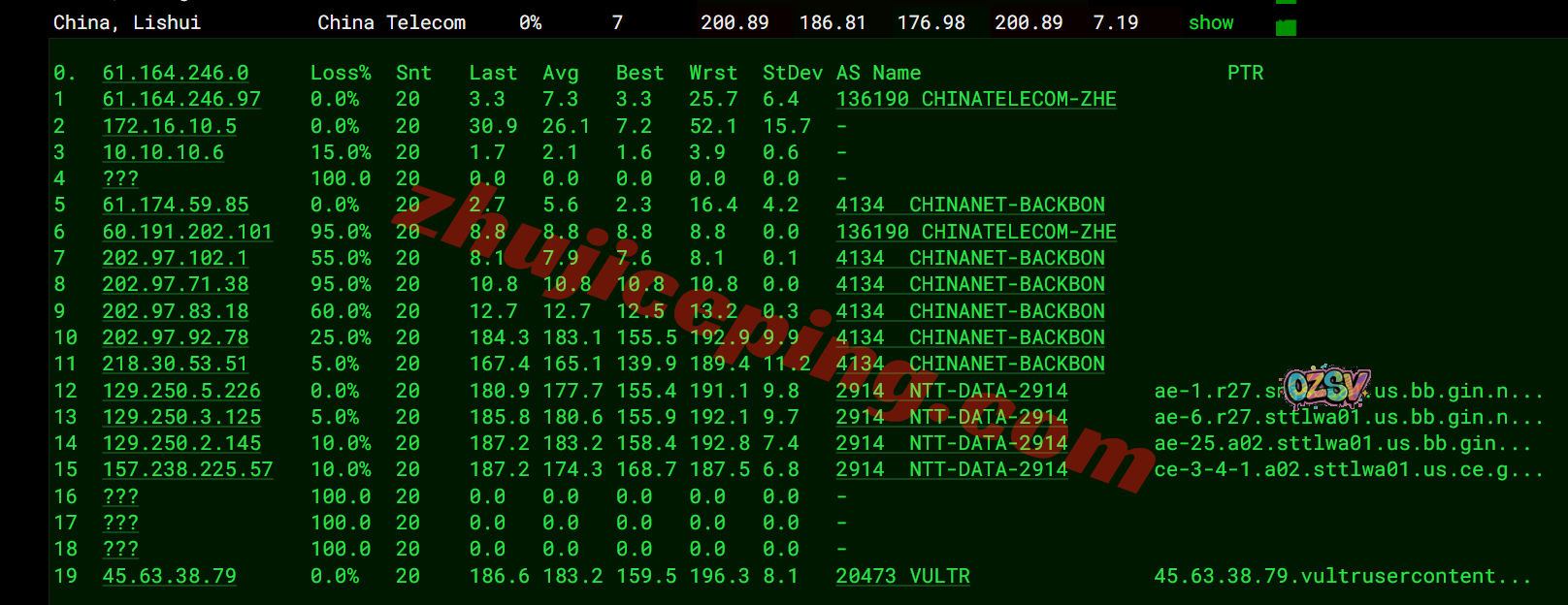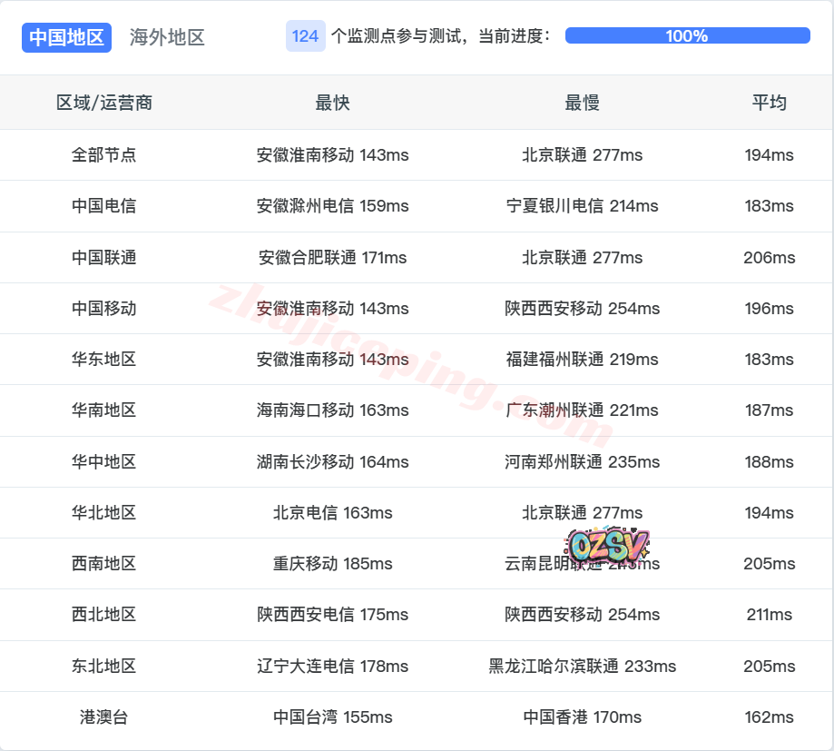 国内三网一百多个节点的延迟测试数据: