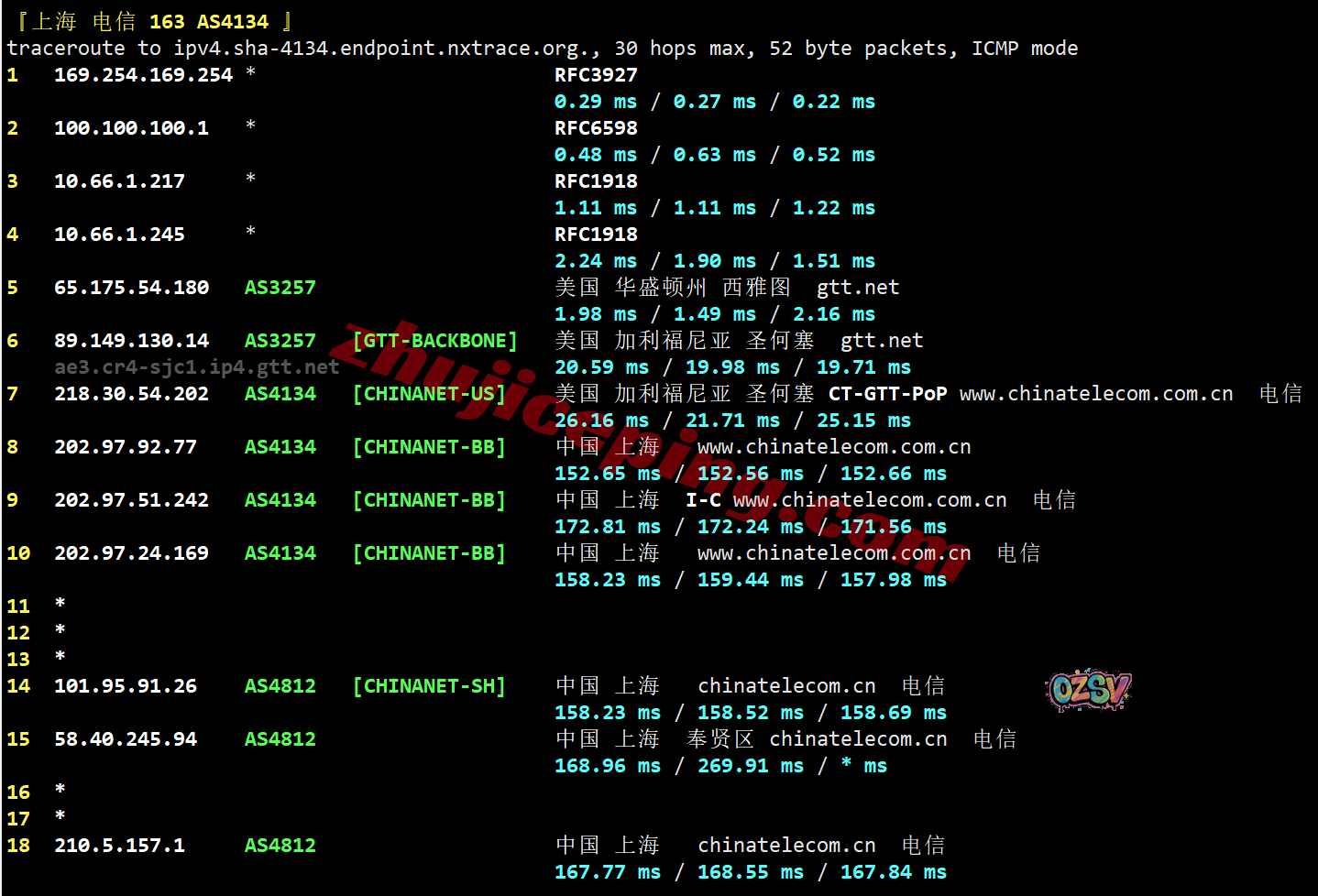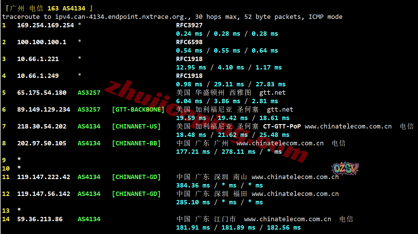 上海/广州方向:走GTT去圣何塞,从电信圣何塞pop/gtt出海回国