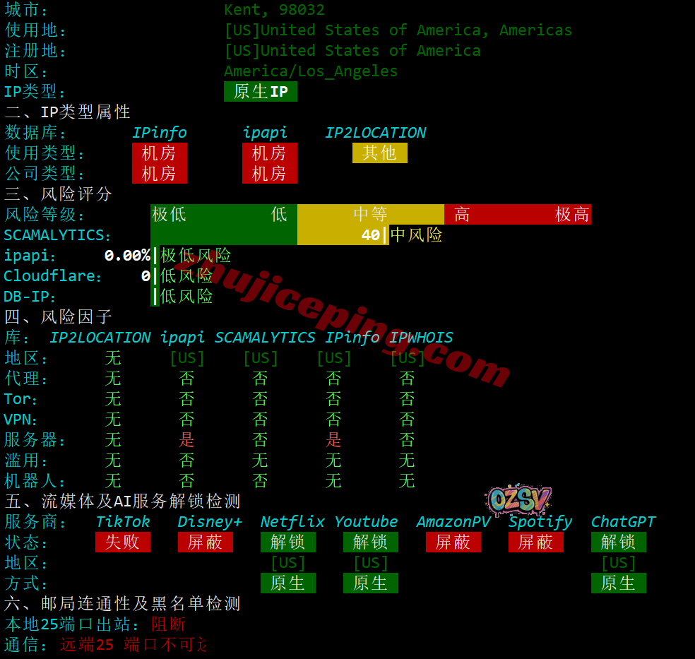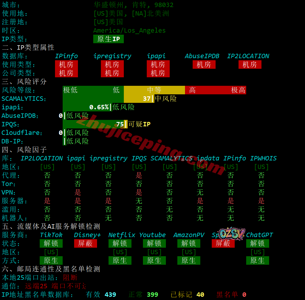 多个数据库对当前IPv4属性的大致判断:美国原生IPv4,能解锁不少东西