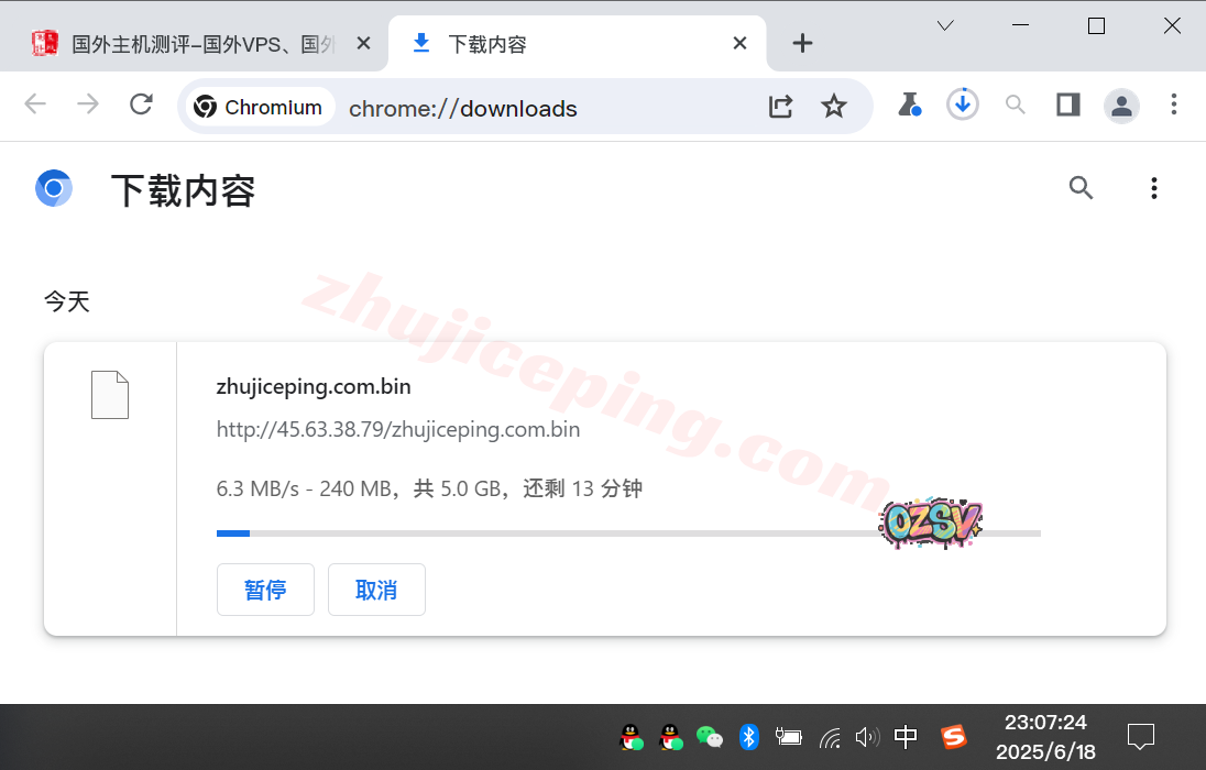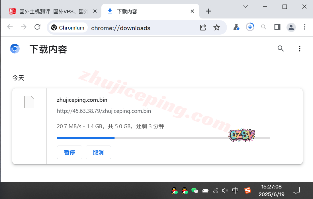 站长广州联通家宽直接用Chrome下载存放在云服务器上的文件,大致的下载速度如下所示:
