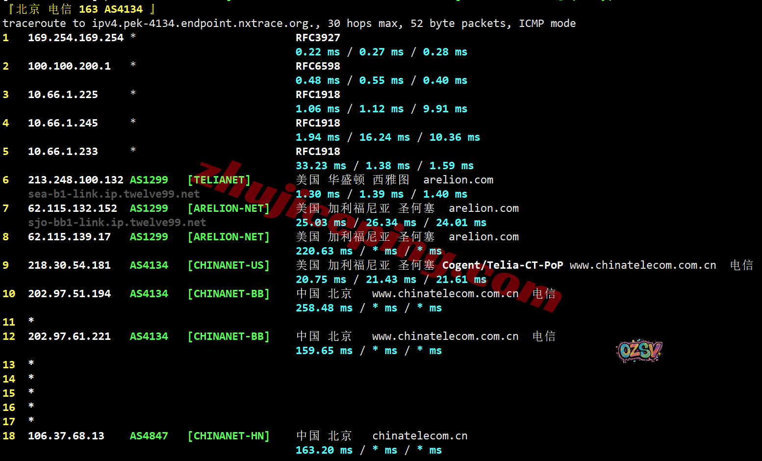 电信去程:直连电信美国圣何塞节点,然后接NTT去西雅图