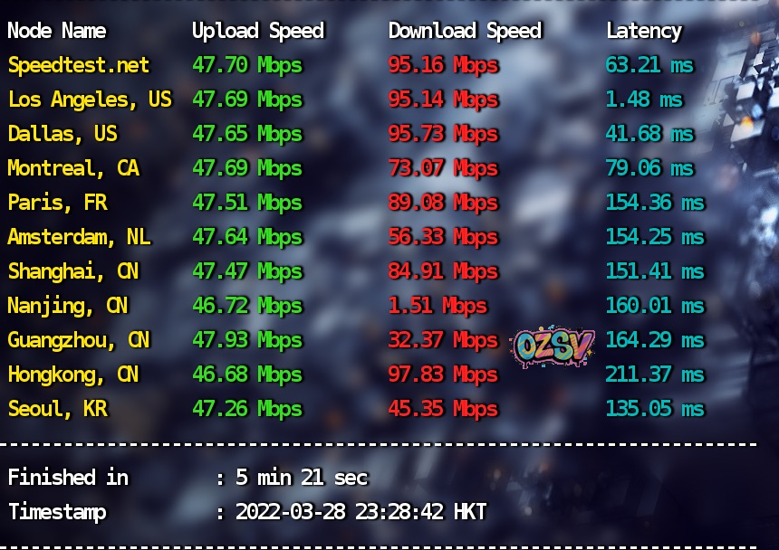 服务器的上行带宽和下行带宽在全球测试能跑到多少这是个非常重要的参数,我们用speedtest.net的全球区节点测试一下,注意看下测试