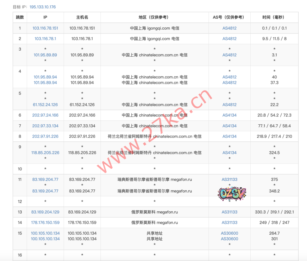 9 61.152.25.145 260.25 ms AS4812 China, Shanghai, ChinaTelecom